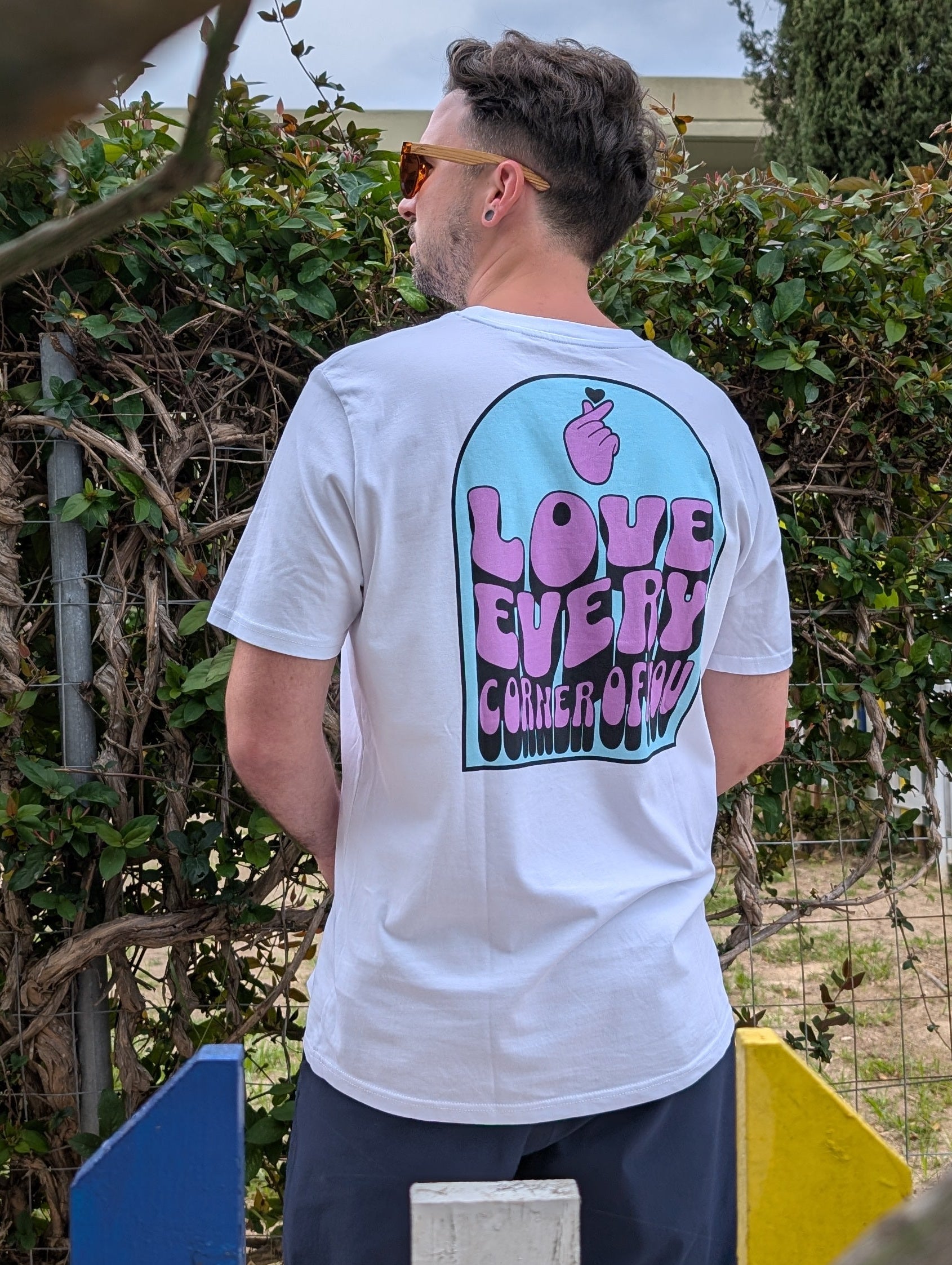 Dein Statement. Deine Haltung. Dein Style. Das Love Every Corner T-Shirt verbindet kompromisslose Nachhaltigkeit mit urbanem Streetwear-Design – für alle, die ihre Überzeugungen tragen.